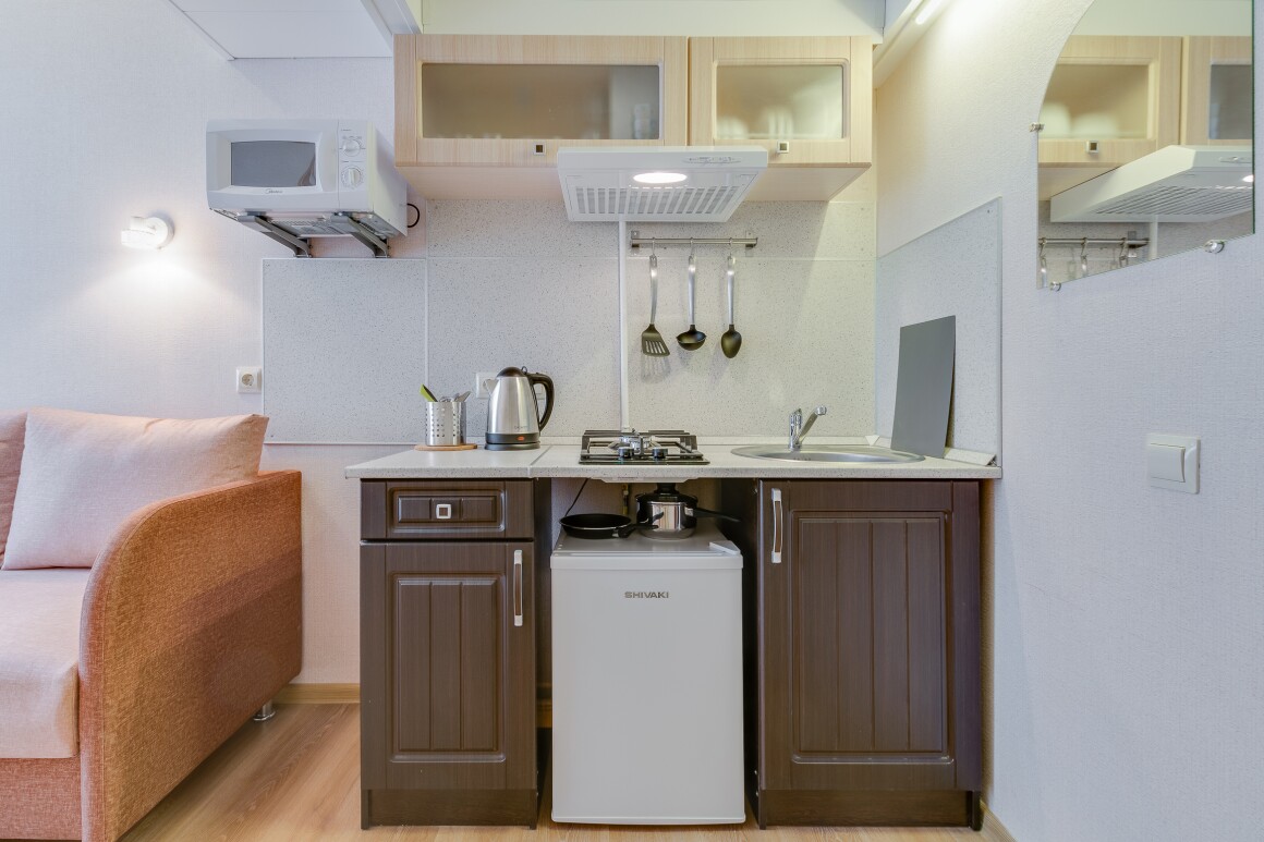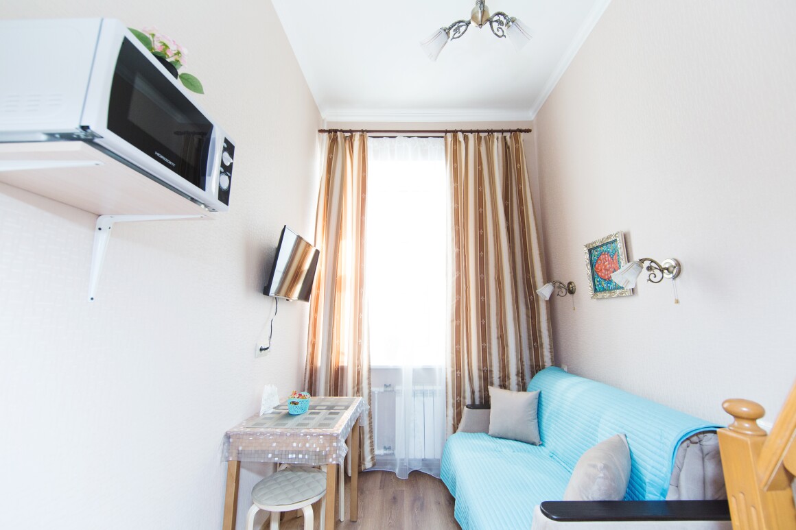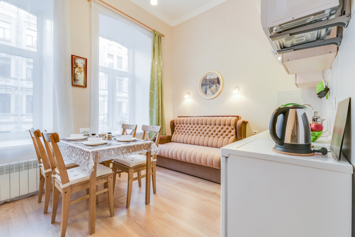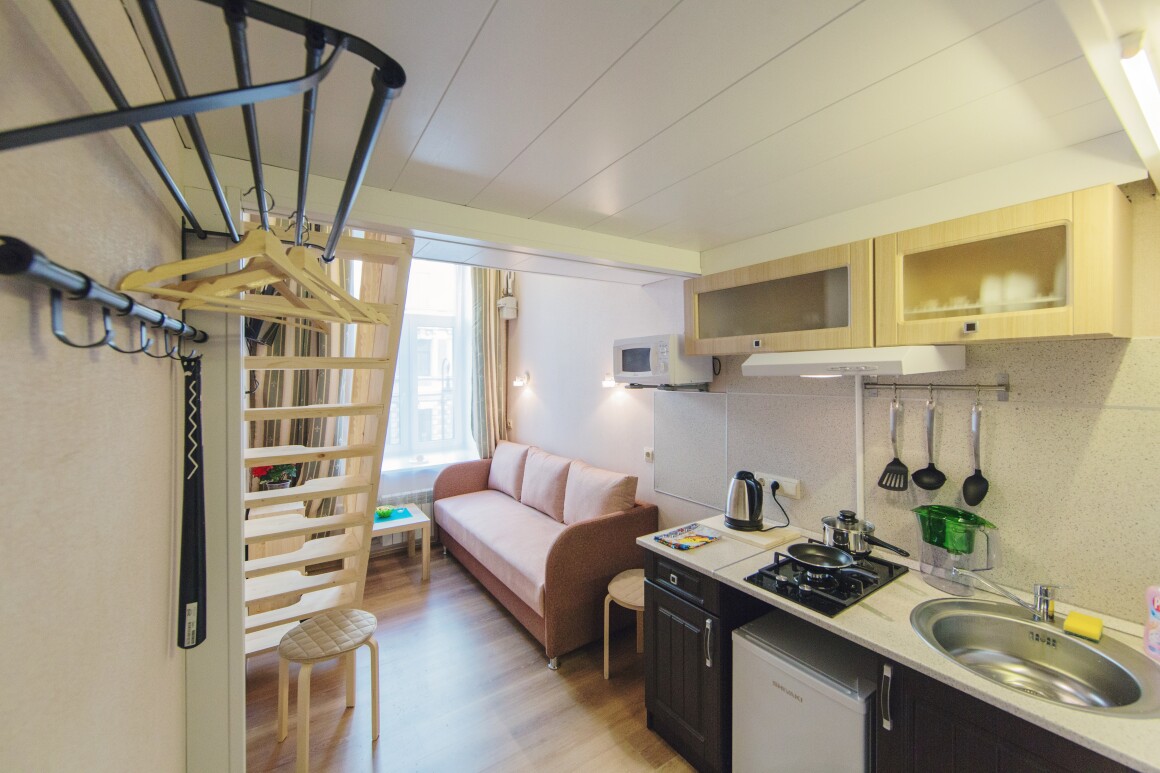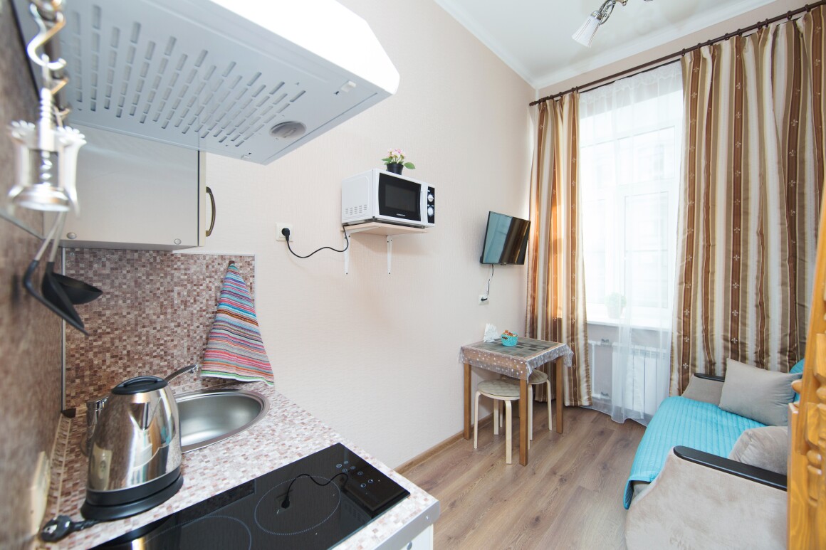 - Апартаменты с мини-кухней , электрическим чайником и плитой. Вид на Лиговский переулок.