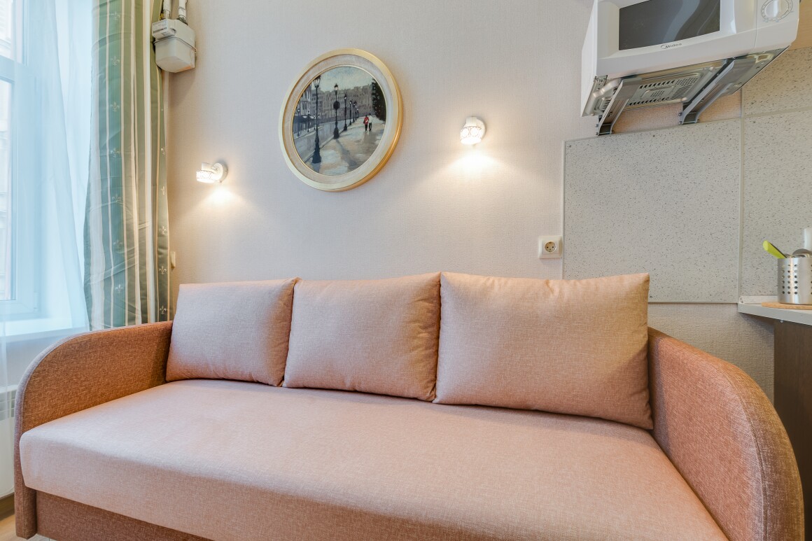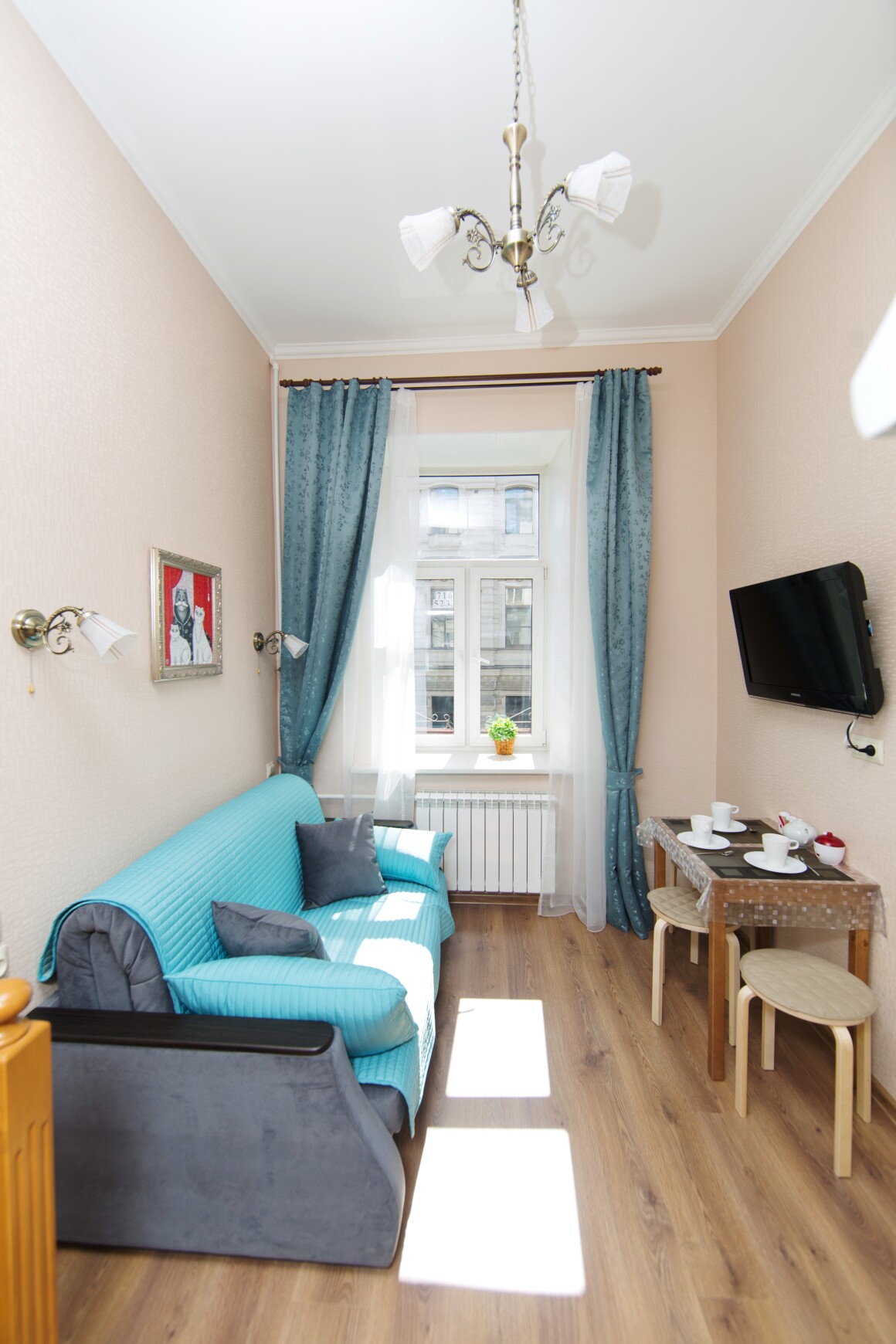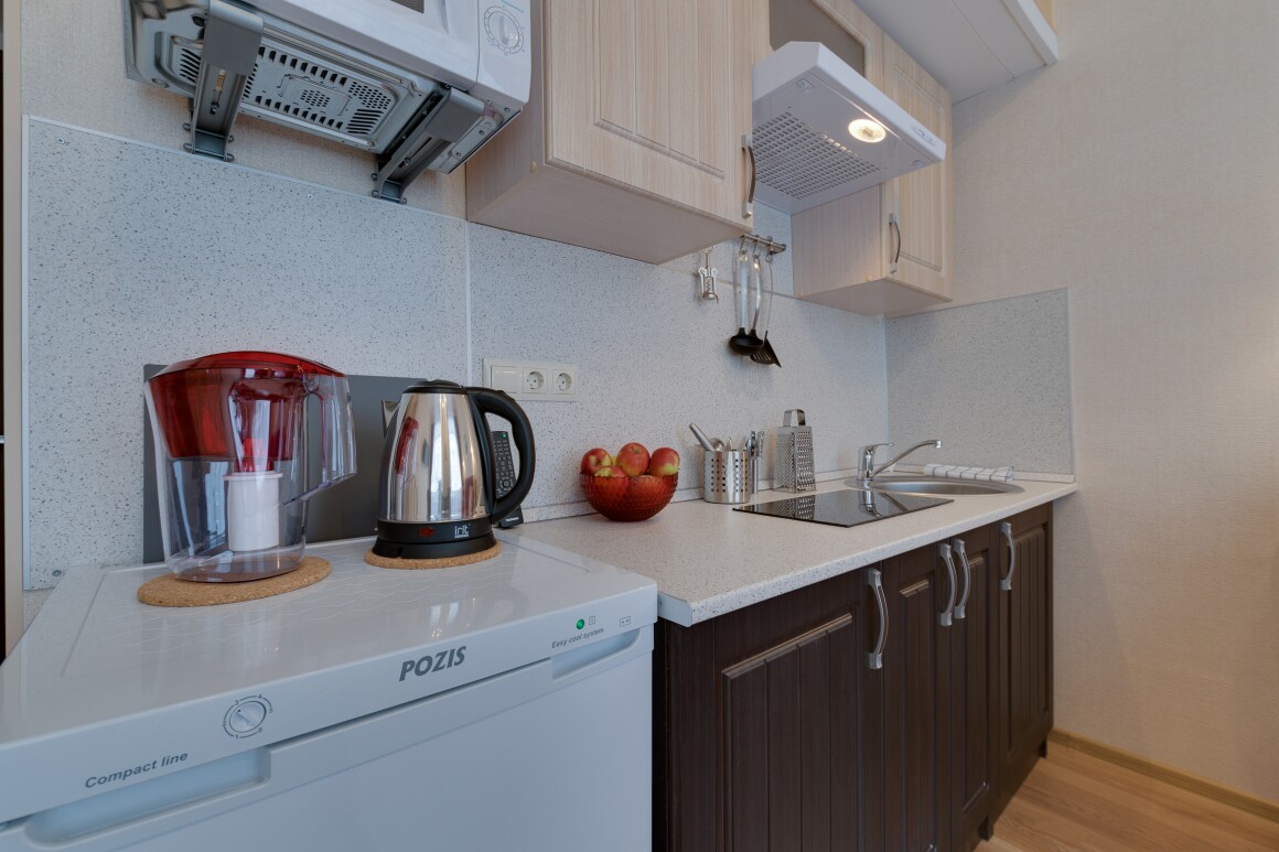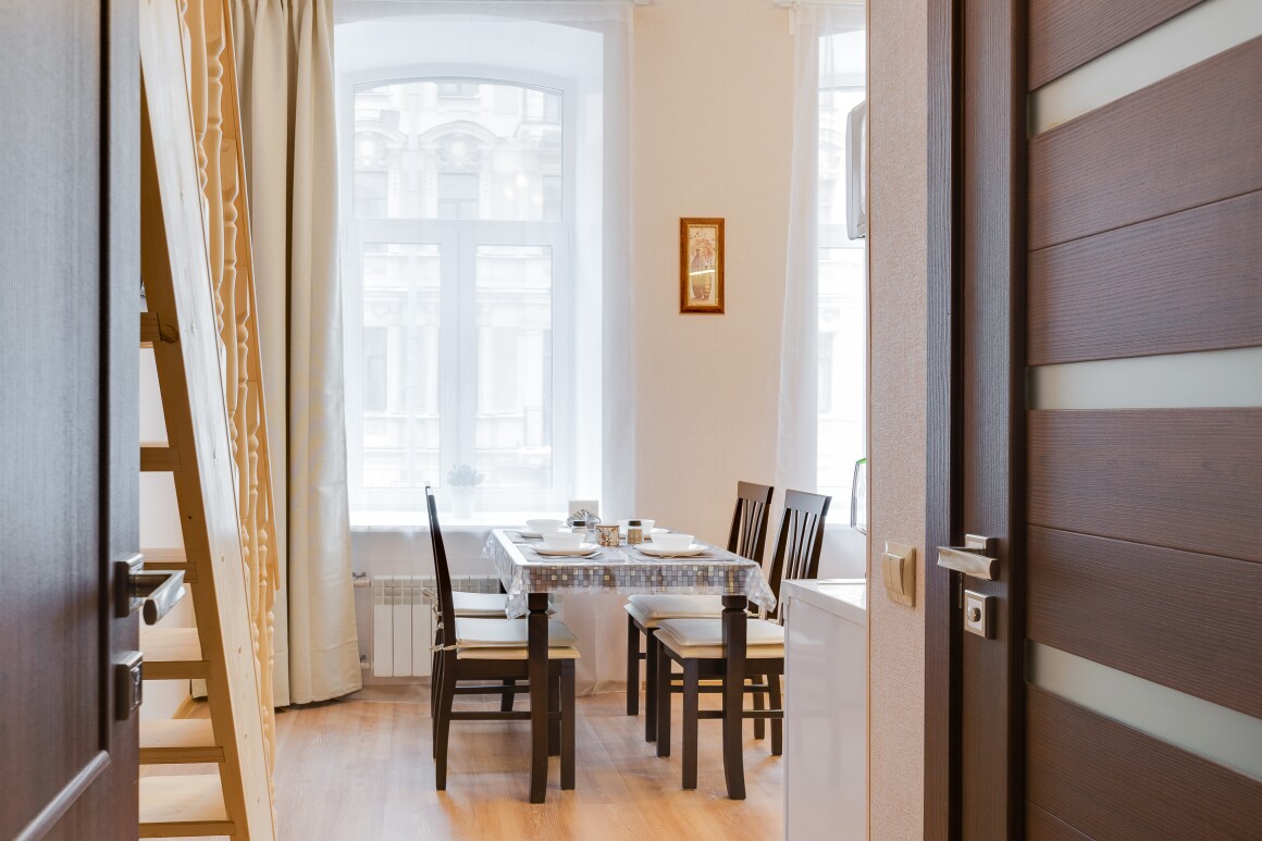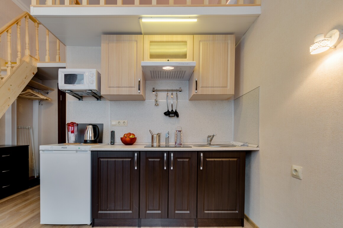 - Апартаменты с мини-кухней , электрическим чайником и плитой. Вид на Лиговский переулок.