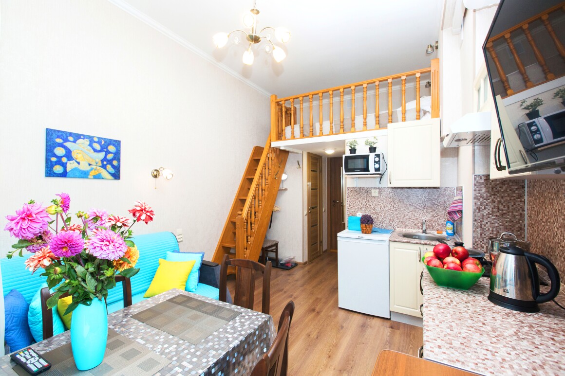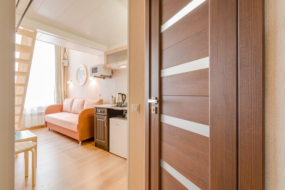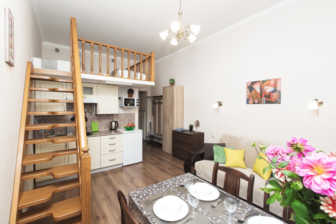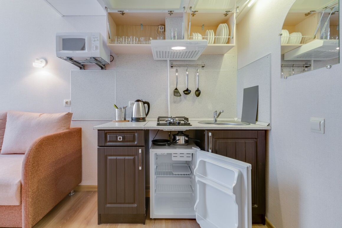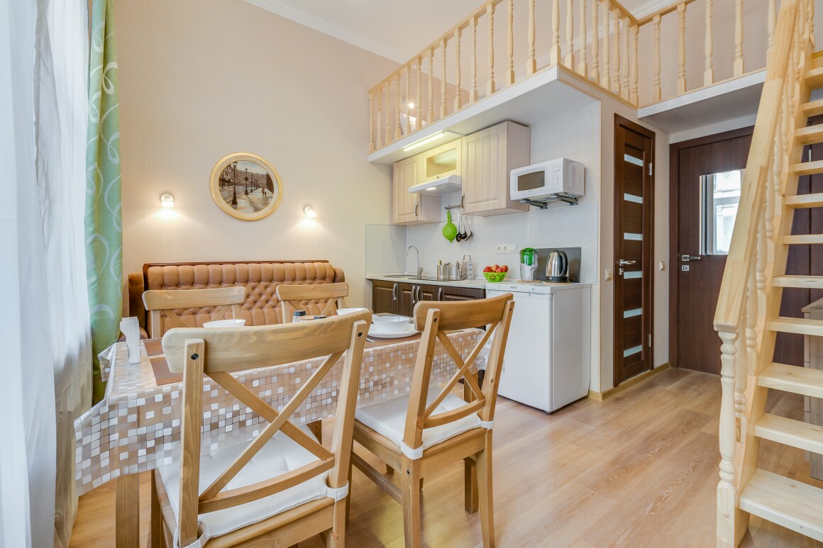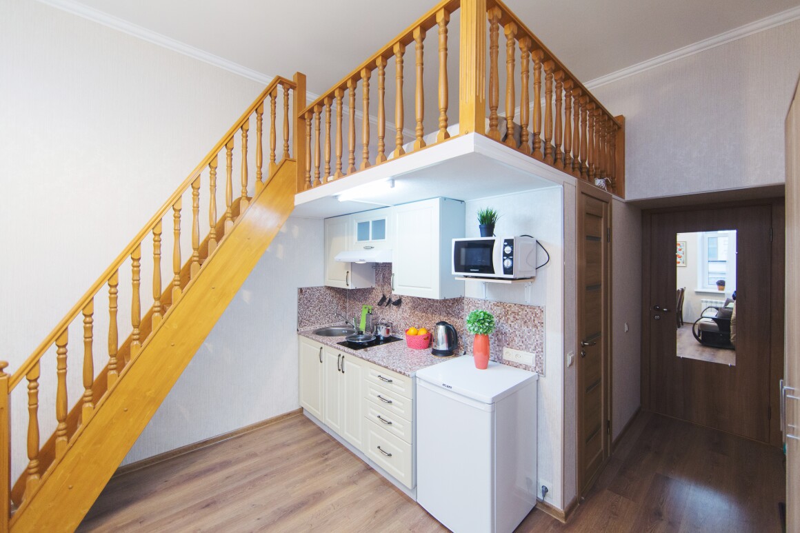 - Апартаменты с мини-кухней , электрическим чайником и плитой. Вид на Лиговский переулок.