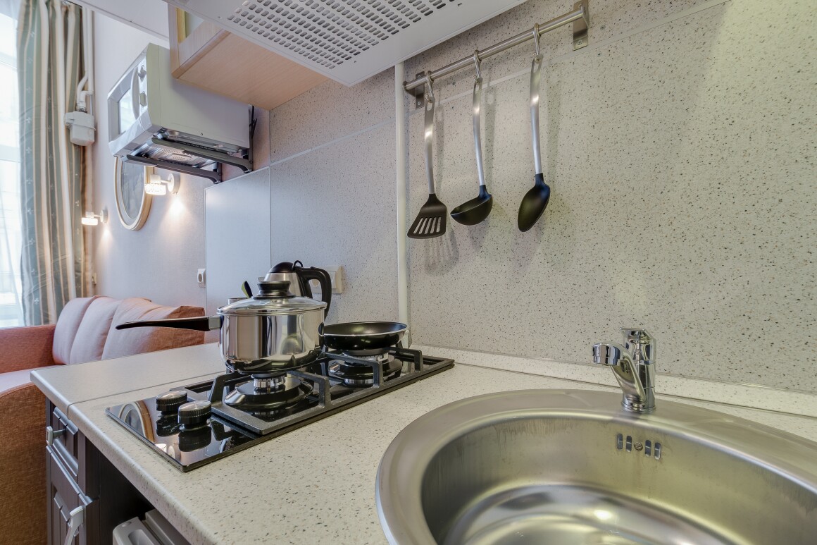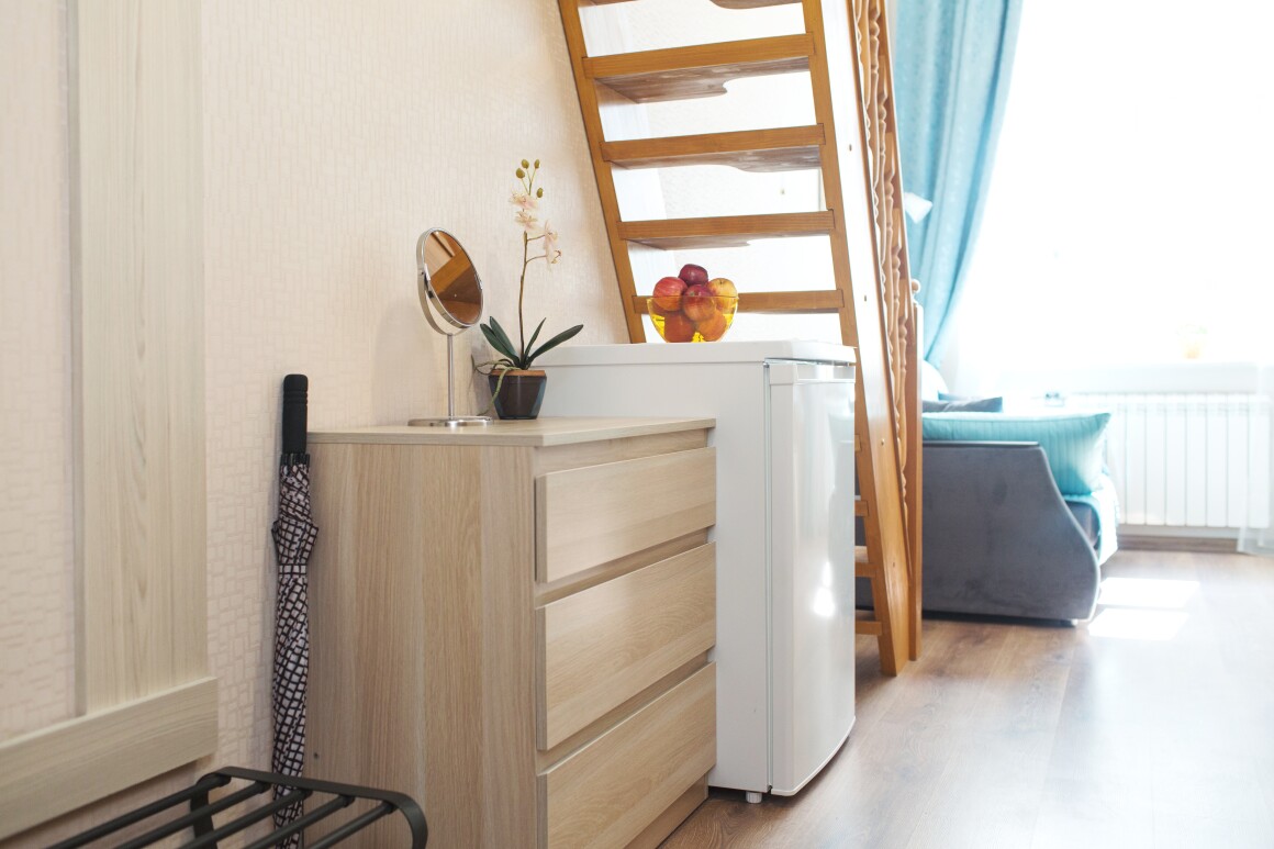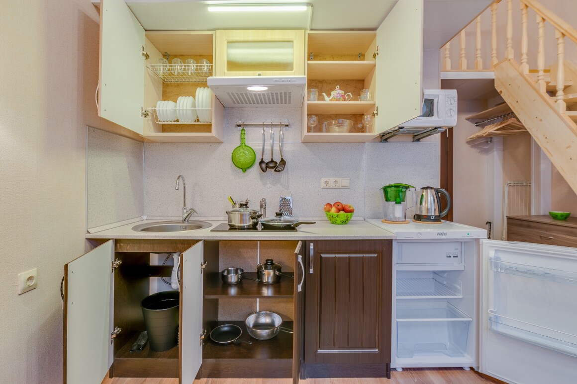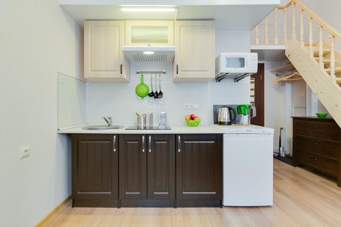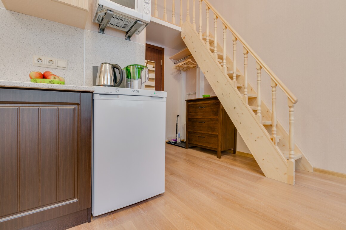 - Апартаменты с мини-кухней , электрическим чайником и плитой. Вид на Лиговский переулок.