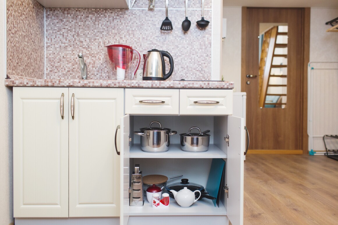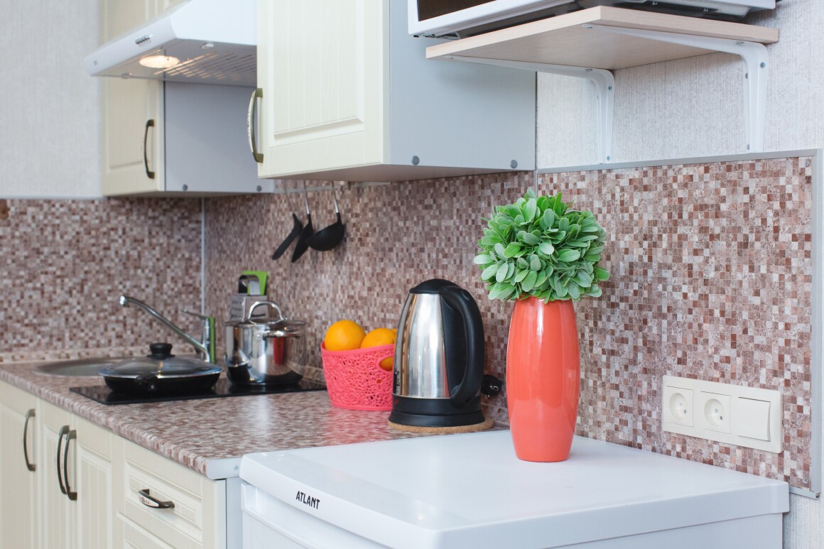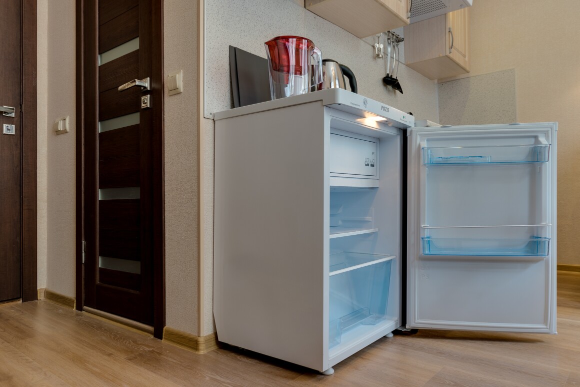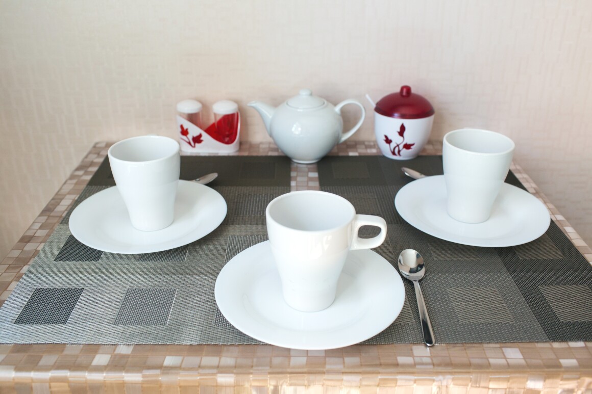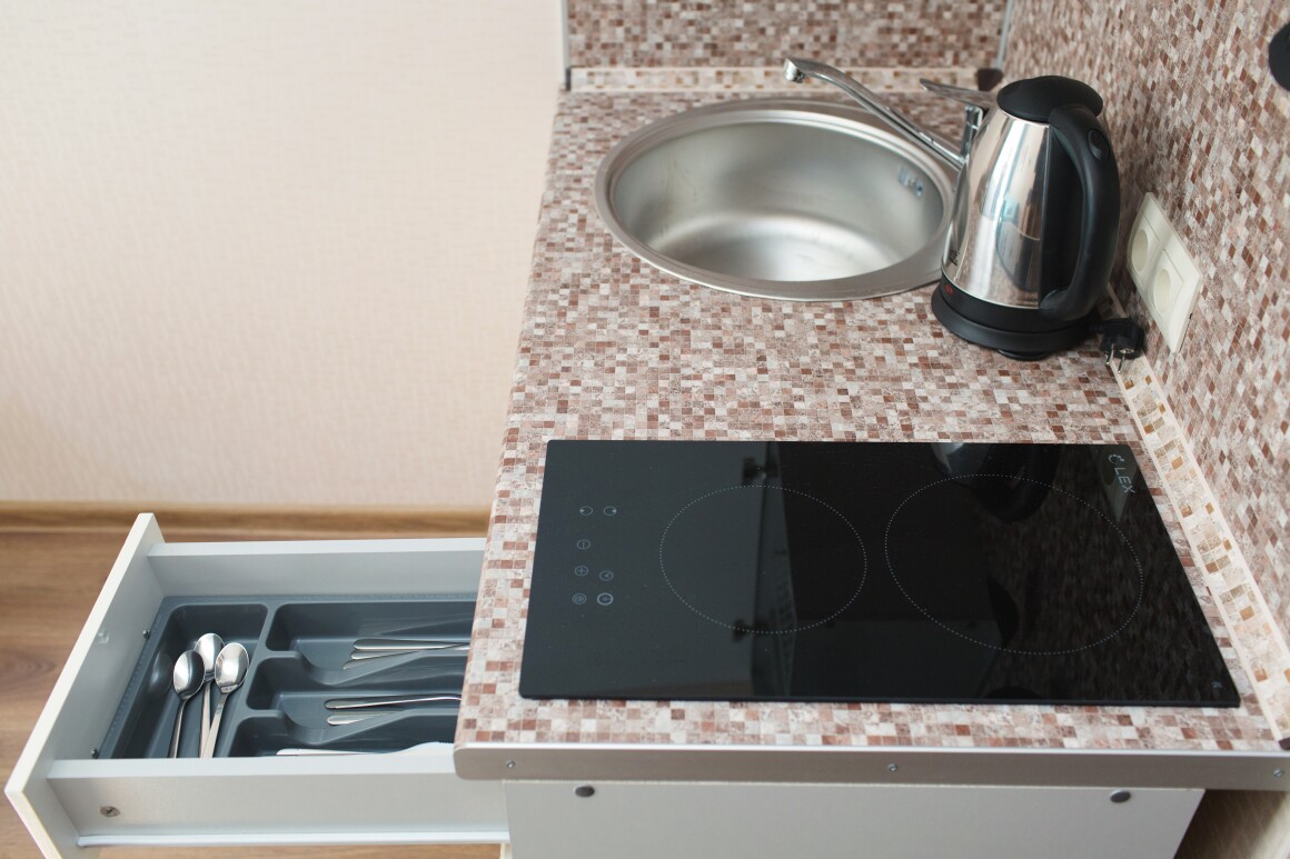 - Апартаменты с мини-кухней , электрическим чайником и плитой. Вид во двор.
