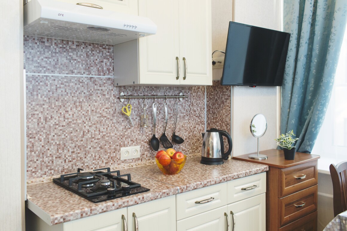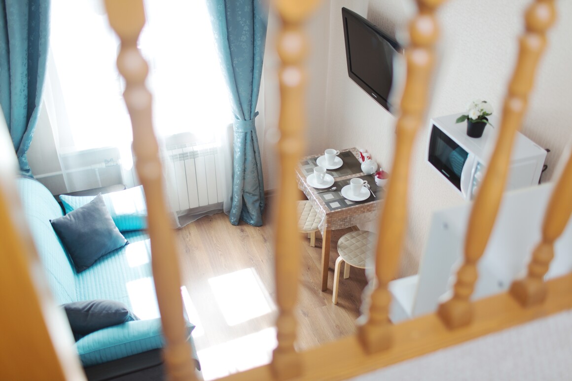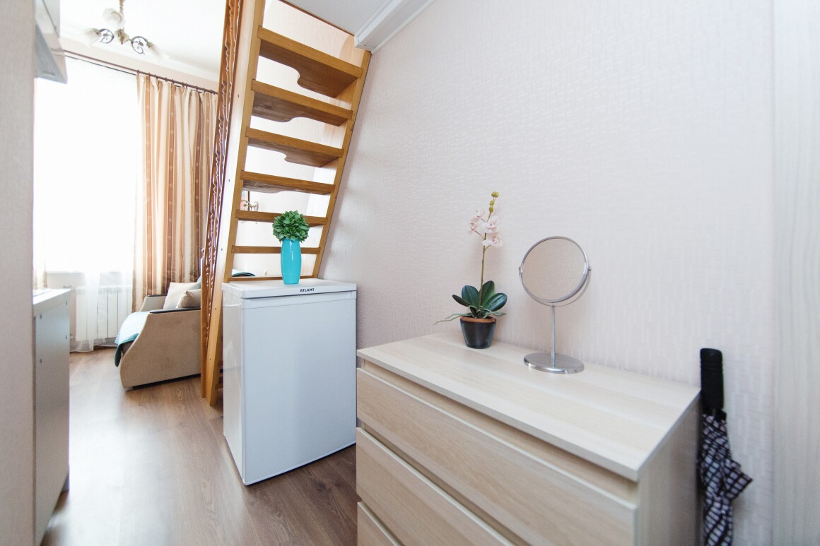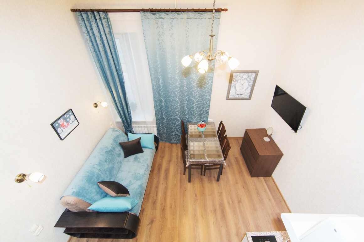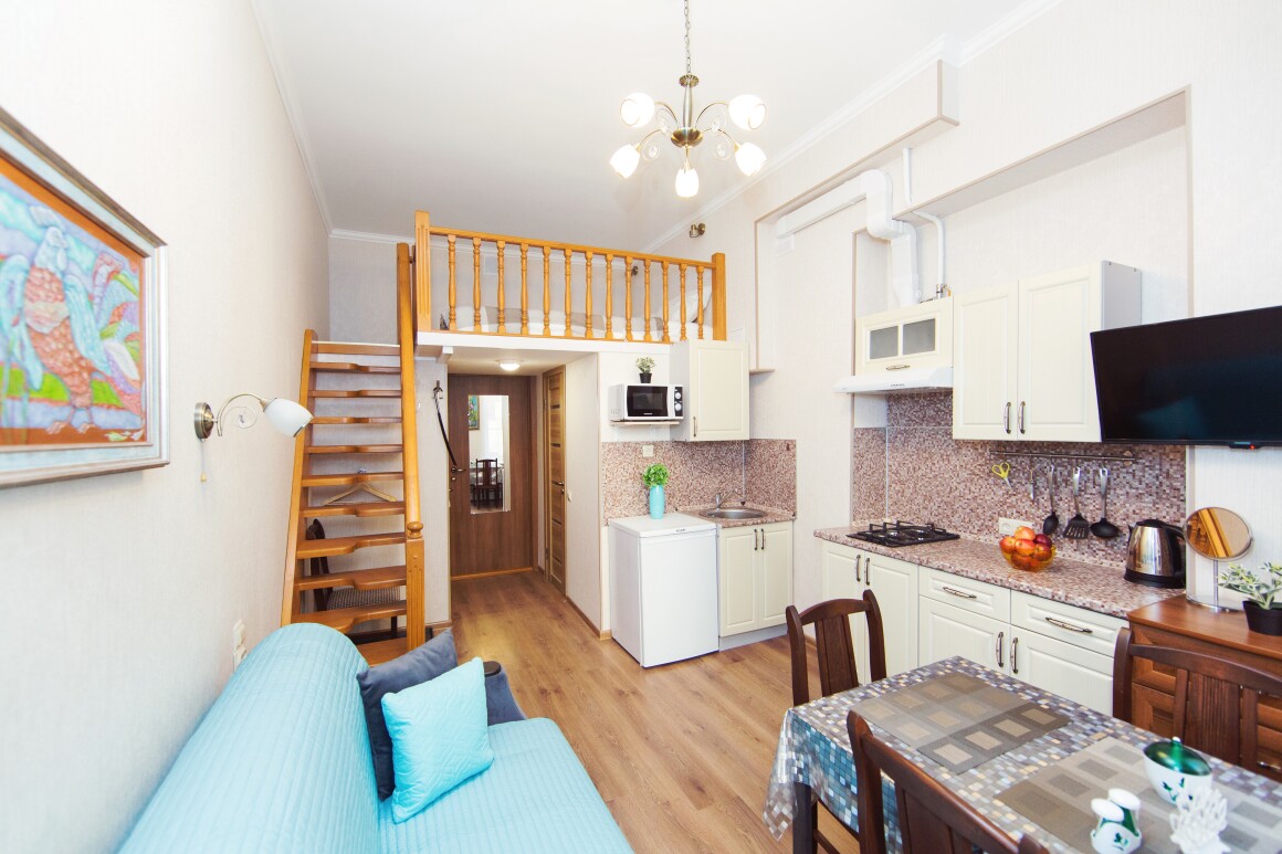 - Апартаменты с мини-кухней , электрическим чайником и плитой. Вид на улицу Пушкинскую.
