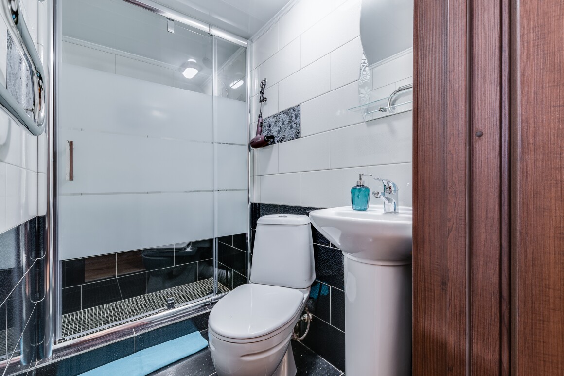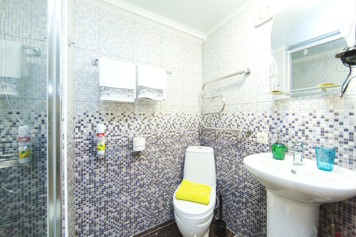 - На 1 уровне: Диван, Душевая кабина, Туалет, Фен, Утюг, Мини-кухня, Посуда, Плита, Холодильник, Гладильные принадлежности, Бесплатные туалетные принадлежности (шампунь, мыло), Туалетная бумага, Микроволновая печь, Стиральная машина, Тапочки, Спутниковые каналы, Телевизор с плоским экраном, Звукоизоляция, Электрический чайник, Кухонные принадлежности, Полотенца, Белье, Обеденный стол, Вешалки для одежды, Комод, Сушилка для обуви, Зонт, Корзины для мусора, Бесплатный Wi-Fi